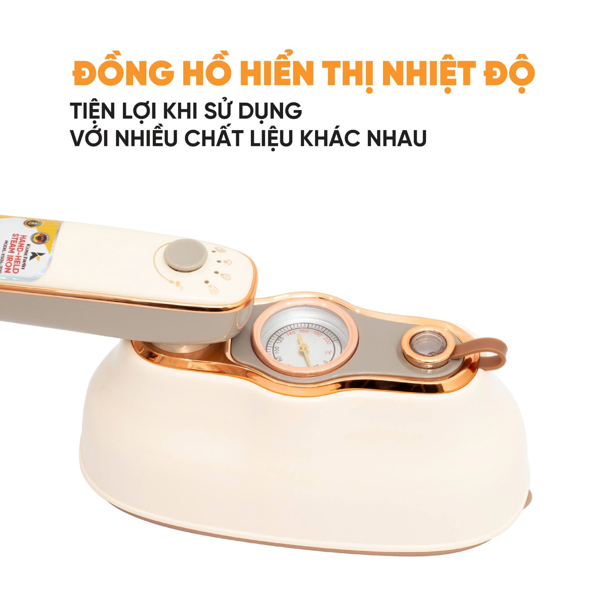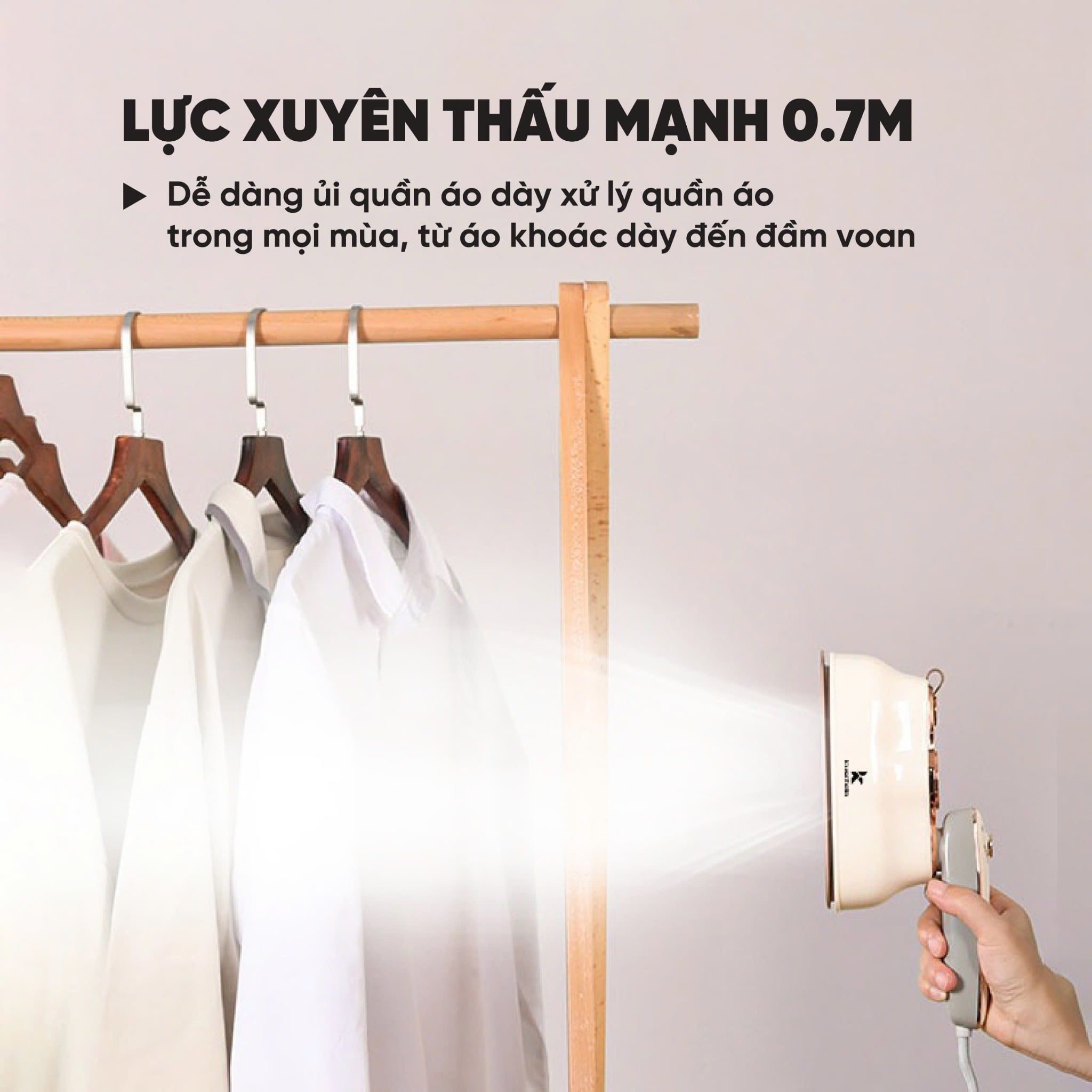 - Chế độ làm nóng kép, hơi phun mạnh và liên tục giúp ủi phẳng nếp nhăn nhanh chóng