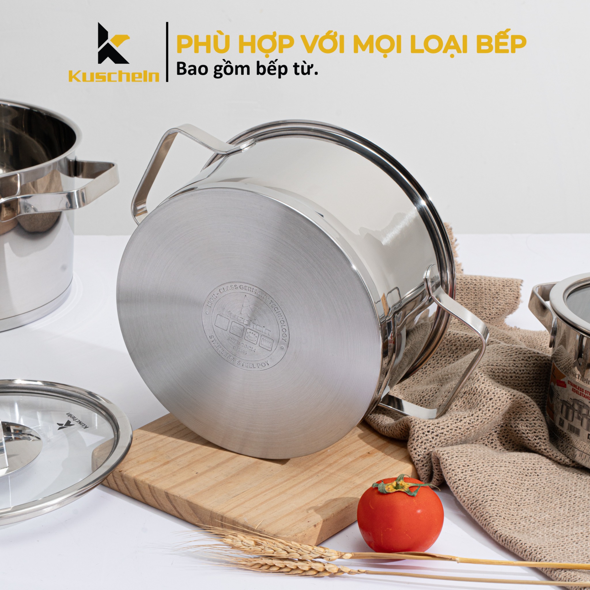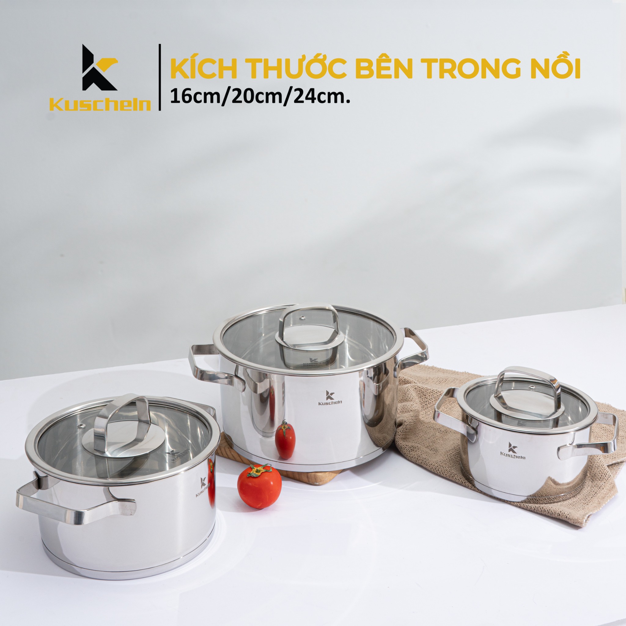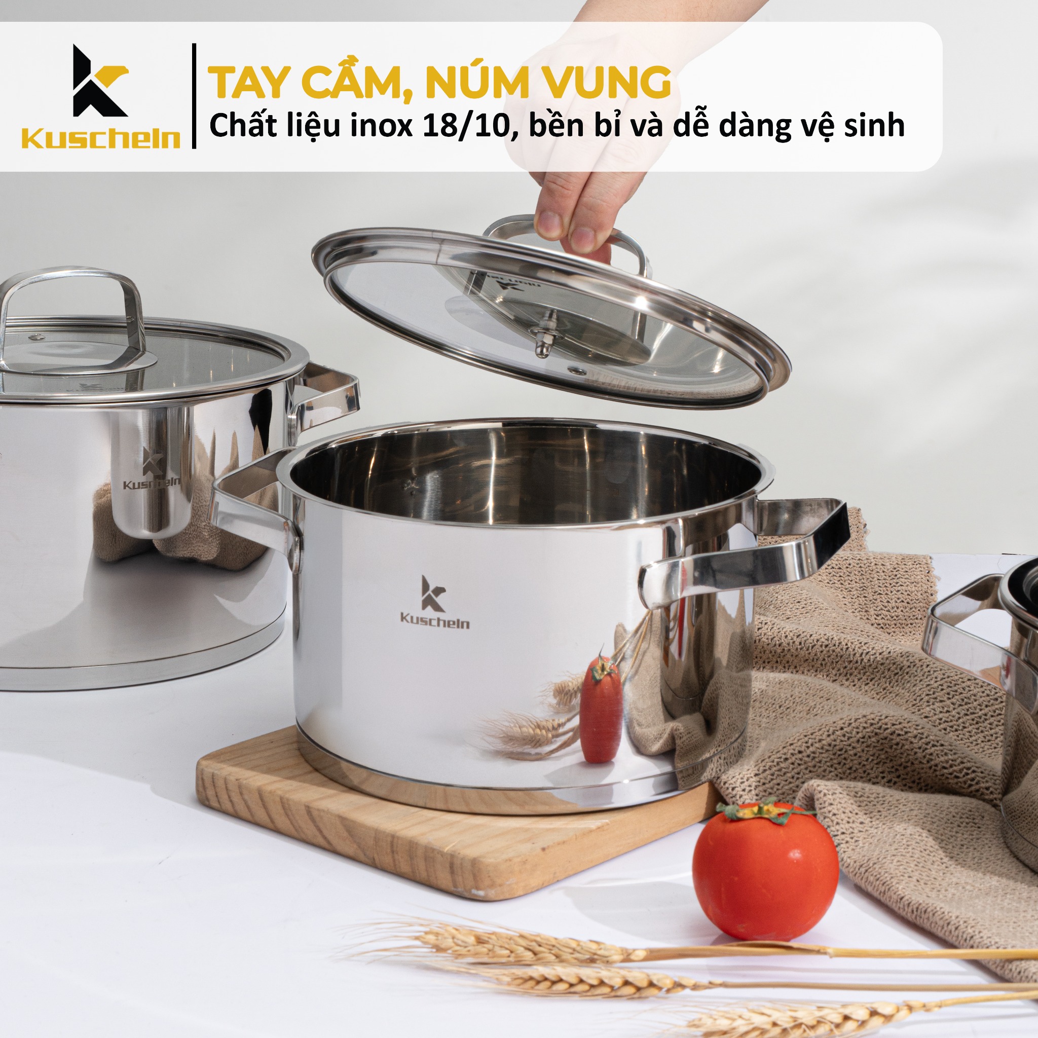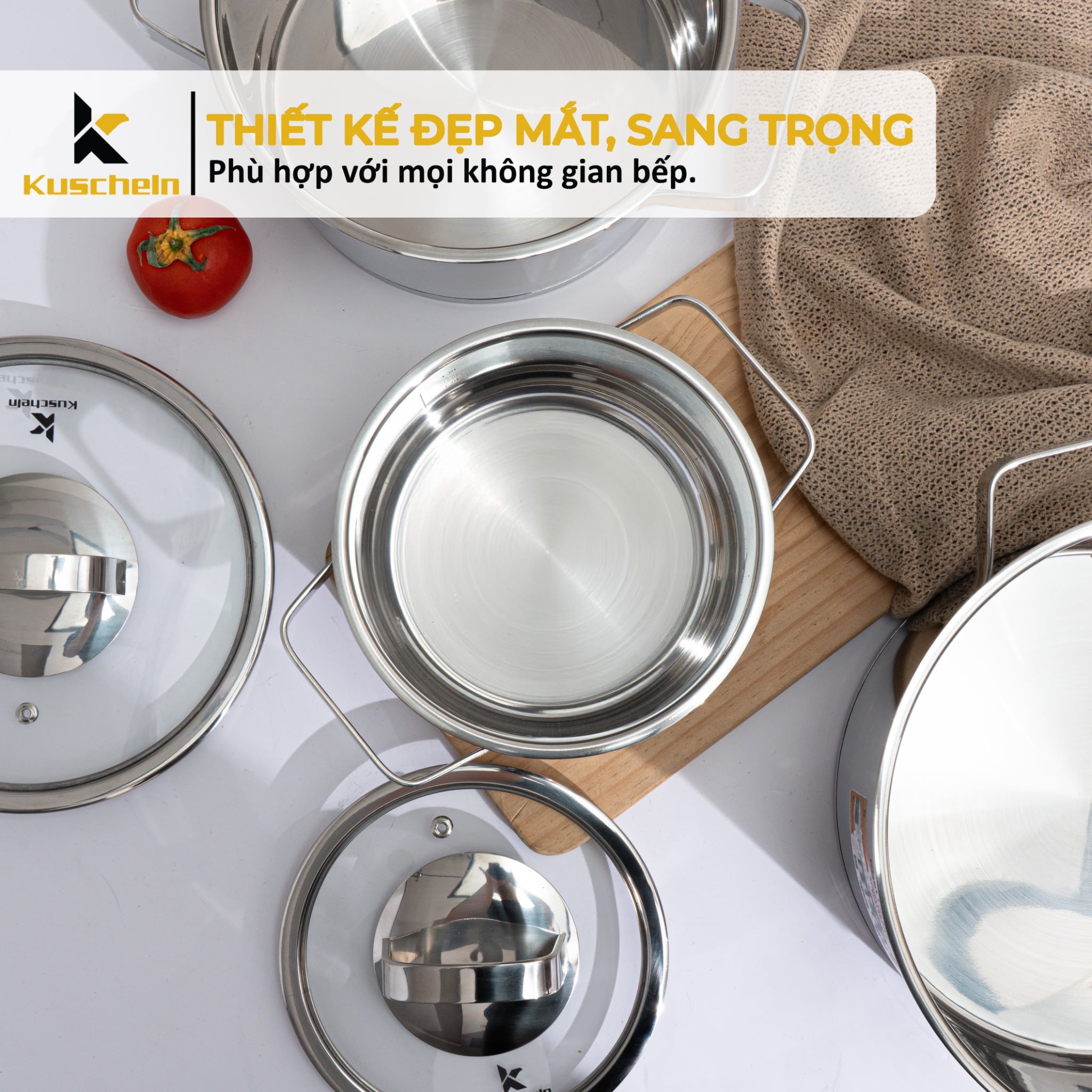 Chất liệu inox cao cấp, thiết kế tinh tế, giúp bạn dễ dàng chế biến những món ăn ngon. Bộ nồi Kuscheln KSP24-5DOL với cấu tạo đáy 5 lớp giúp giữ nhiệt hiệu quả và tiết kiệm năng lượng, phù hợp cho mọi loại bếp, đặc biệt là bếp từ.