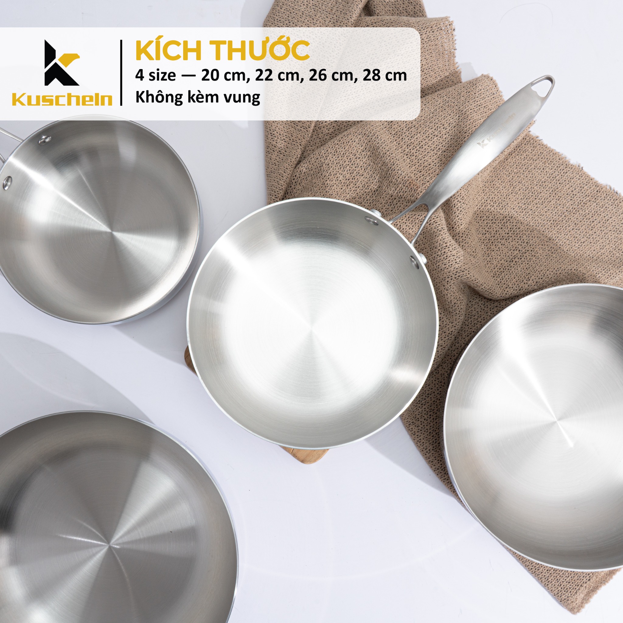 - Chảo inox có 4 size : 20 cm, 22 cm, 26 cm, 28 cm- Chảo cấu tạo 3 lớp, giúp chảo nấu ăn ngon hơn và bền chắc hơn các chảo có đáy thông thường.