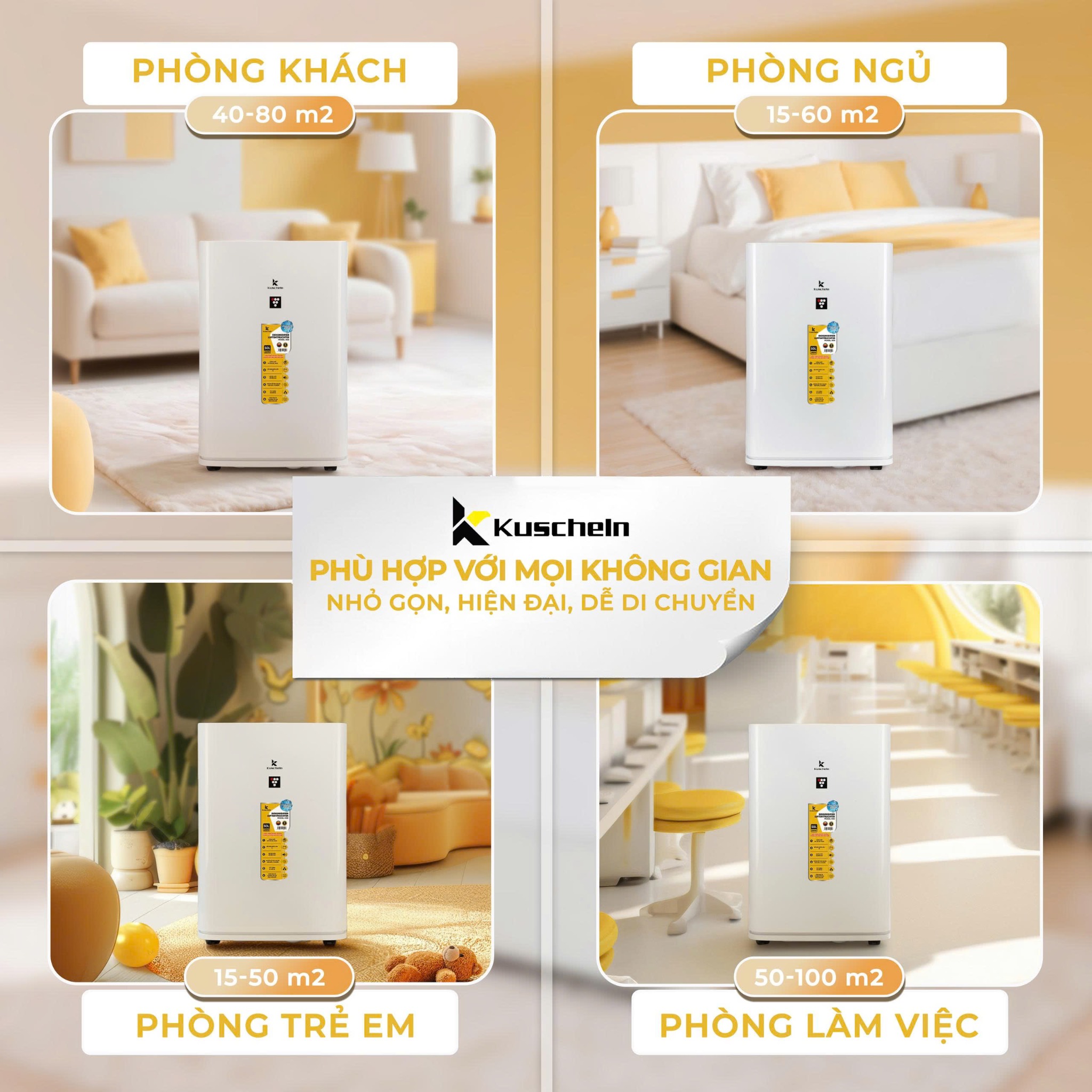 - Thiết kế nhỏ gọn, hiện đại, dễ di chuyển: Phù hợp với mọi không gian như phòng ngủ, phòng khách, văn phòng.