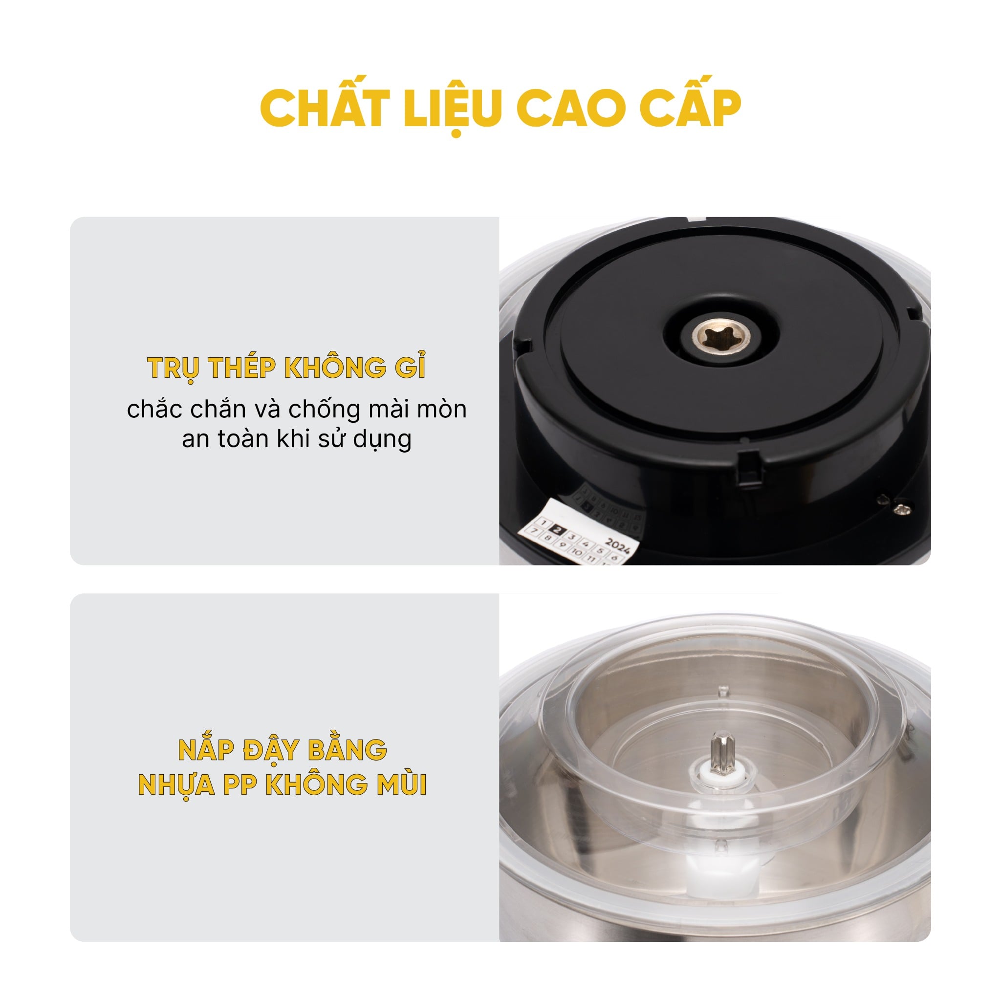 Chất liệu cối xay: Cối inox 304 / Cối thủy tinh