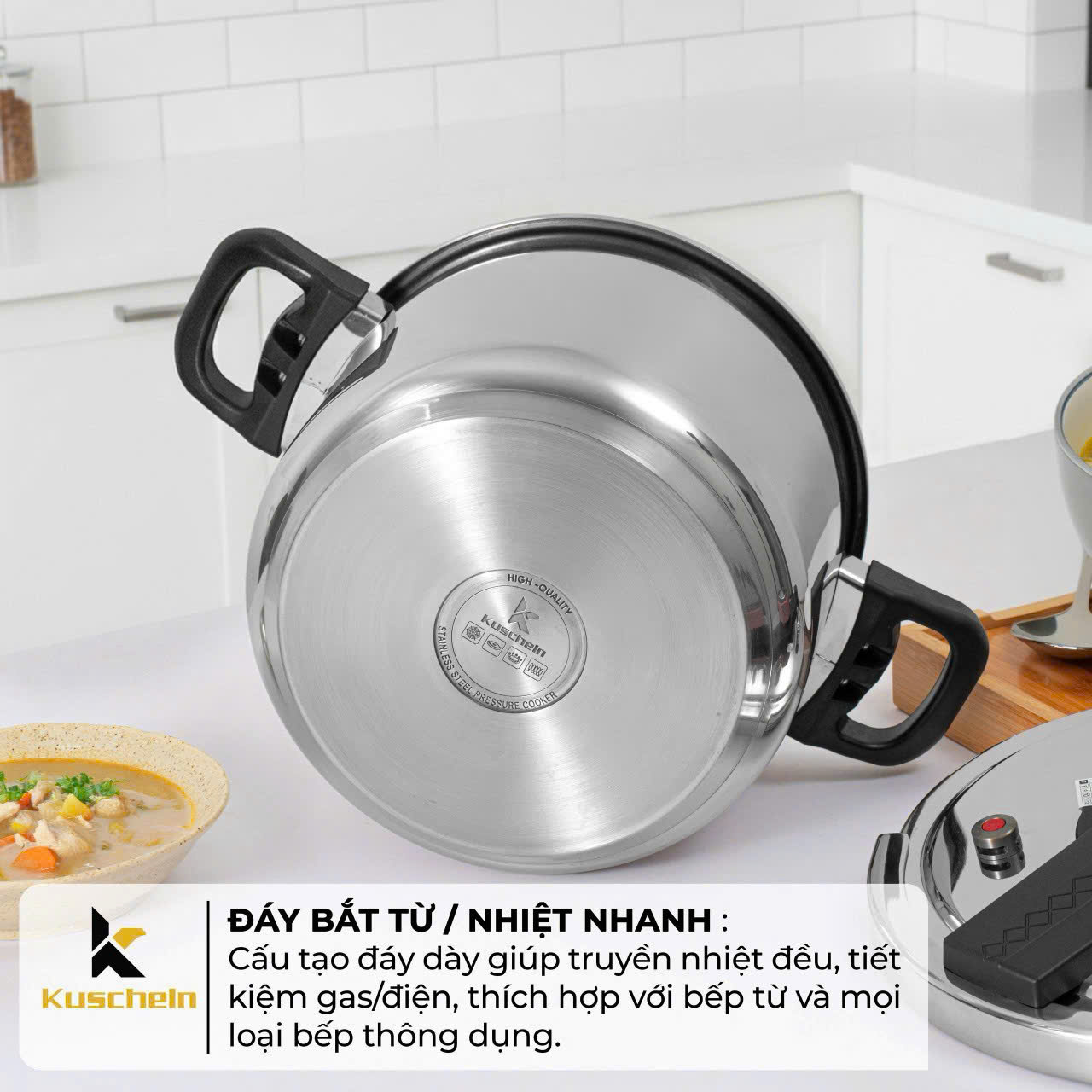 - Đáy từ dày bắt nhiệt nhanh, truyền nhiệt đều, Tiết kiệm điện năng/gas, Dùng được trên mọi loại bếp