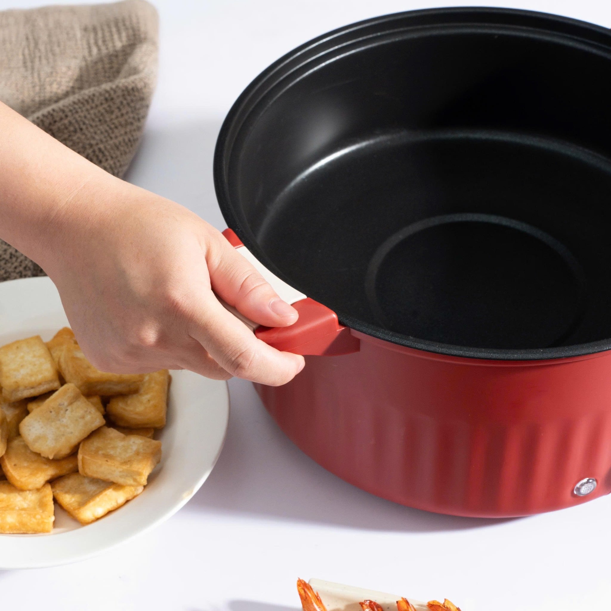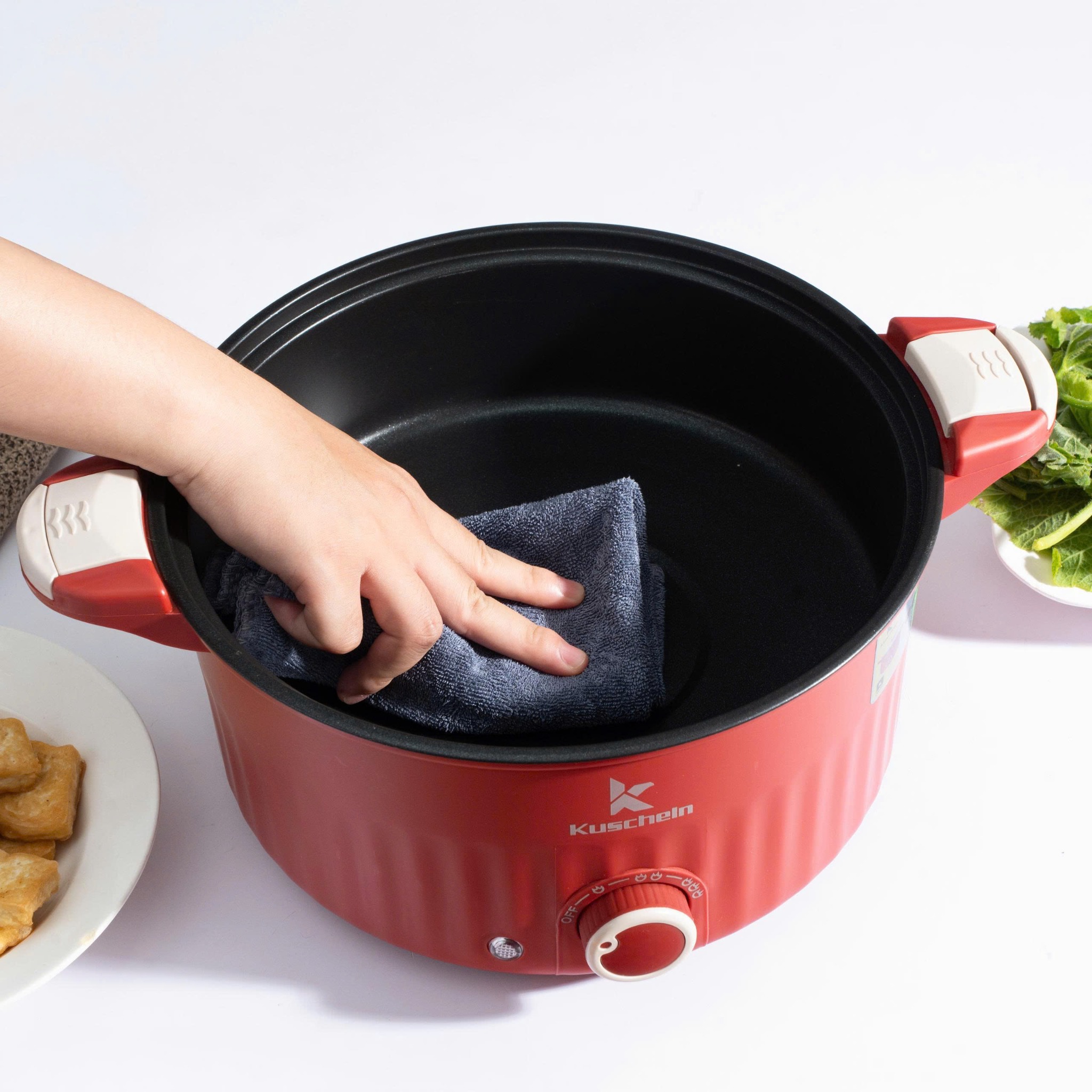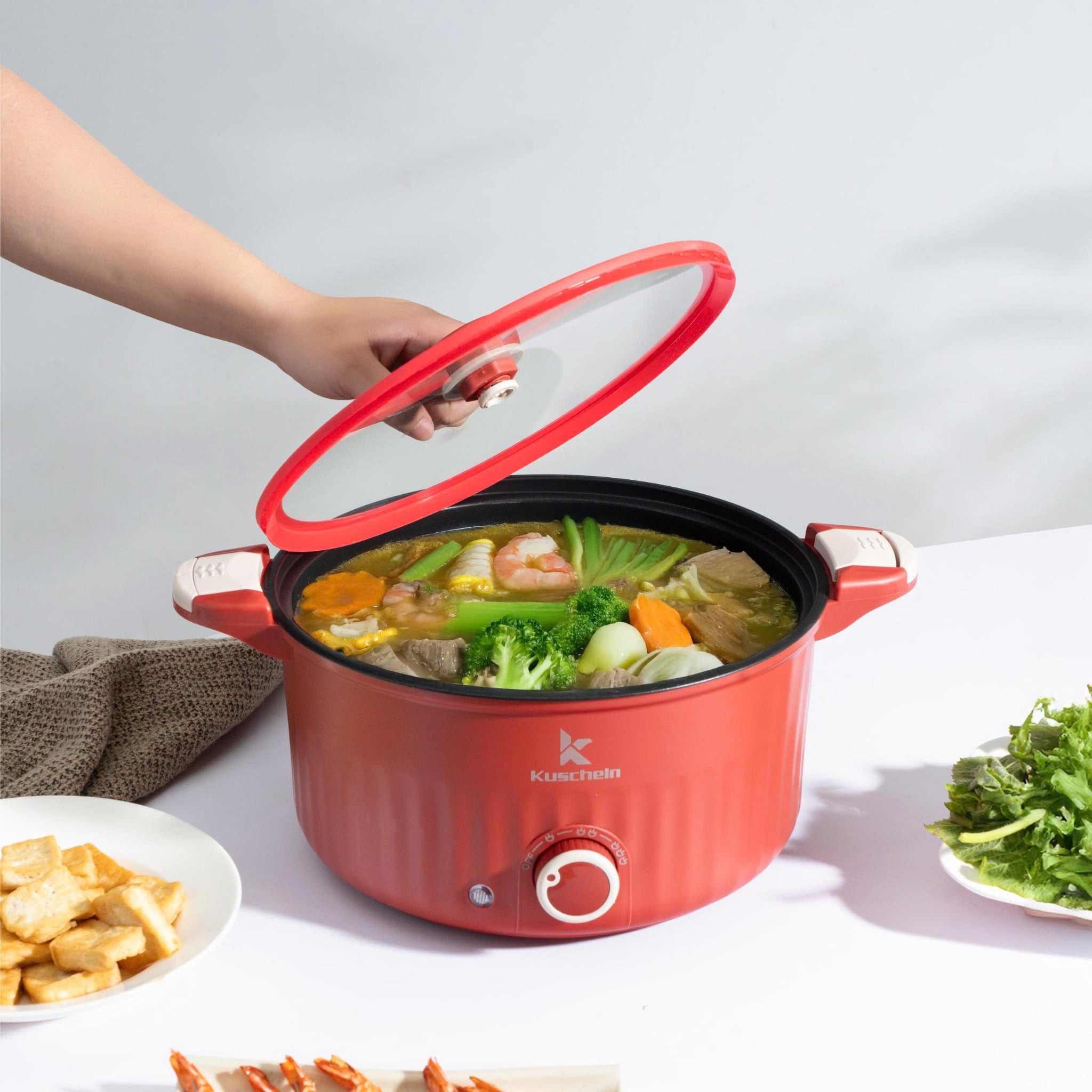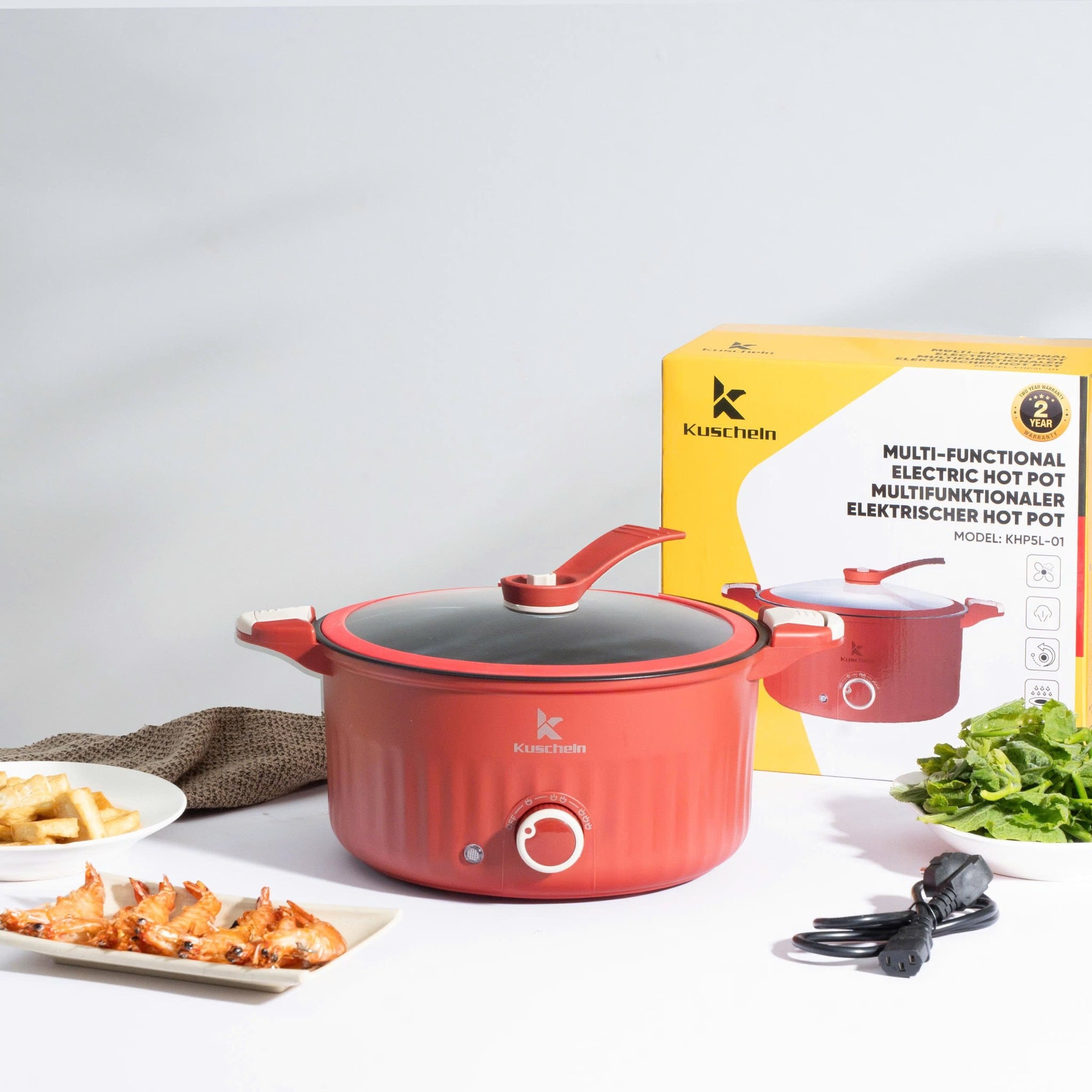 Nồi lẩu điện KHP5L-01 công suất 1000W, điện áp 220V-240V, vỏ nhựa ABS chịu nhiệt. Với lòng nồi hợp kim nhôm phủ chống dính và vung kính cường lực, sản phẩm thích hợp cho các bữa tiệc lẩu gia đình.
