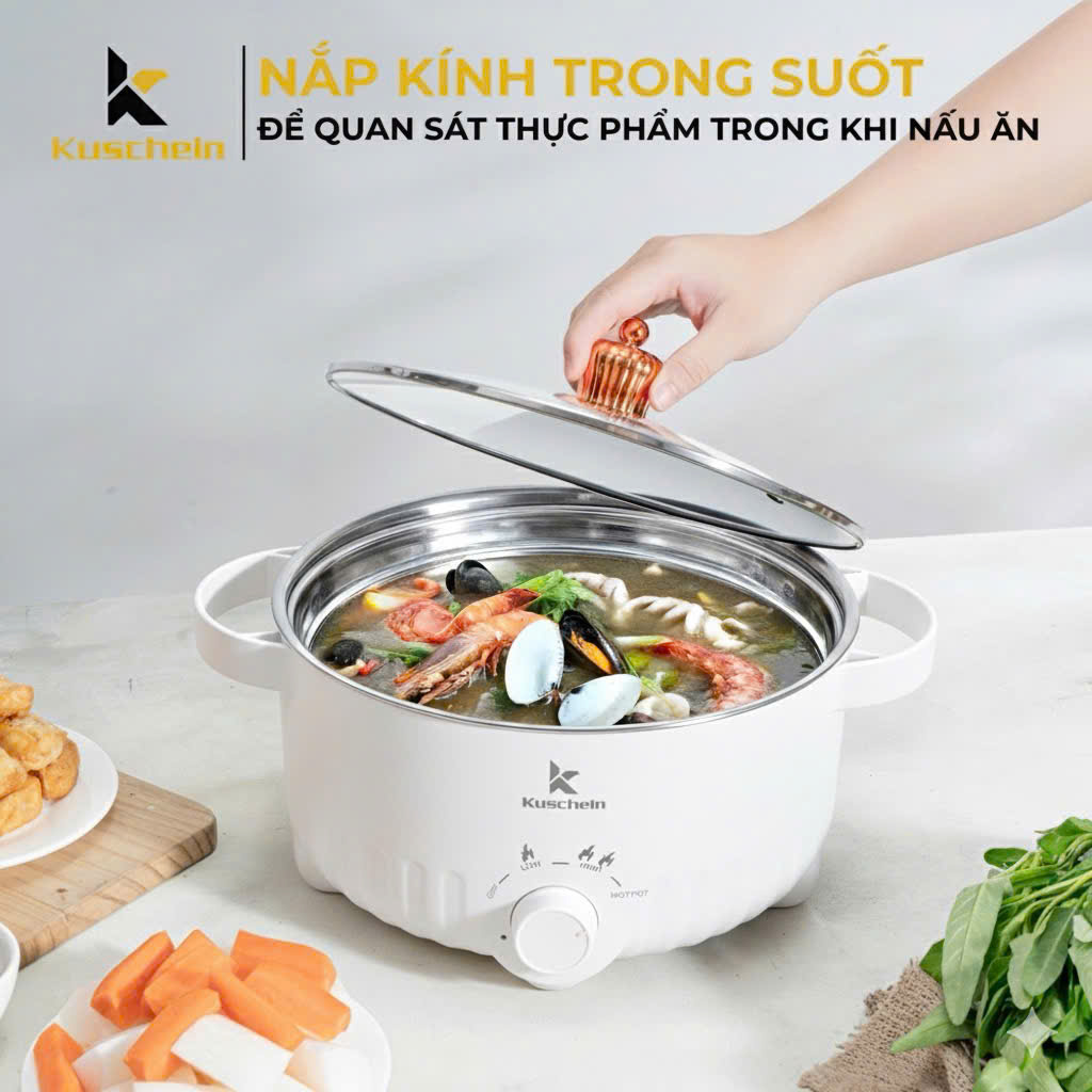 Nồi lẩu điện KHP4L-02 công suất 1000W, điện áp 220V-240V, vỏ nhựa ABS chịu nhiệt. Với lòng nồi hợp kim nhôm phủ chống dính và vung kính cường lực, sản phẩm thích hợp cho các bữa tiệc lẩu gia đình.